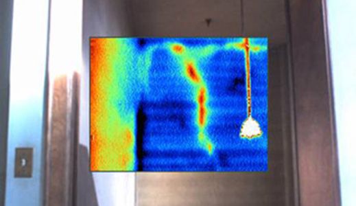 The picture above was taken during the summer and illustrates an area of heat infiltration through a crack in an exterior wall.
